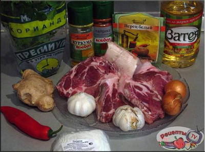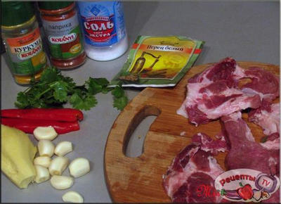 450 гр свинины (у меня - шейка с косточками)